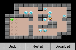 solve levels by grabbing diamonds and avoiding falling rocks. Watch out